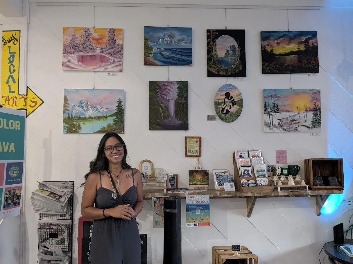 A huge thank you to the wonderful Nakia & Justin @barerootscoffeetahoe for their incredible support with my installation and for providing such a beautiful space to showcase local art.